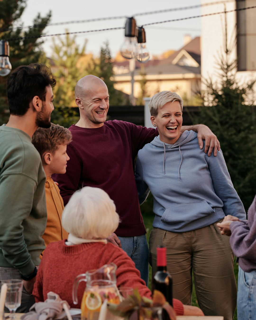 Multi-generational family laughing during thanksgiving day